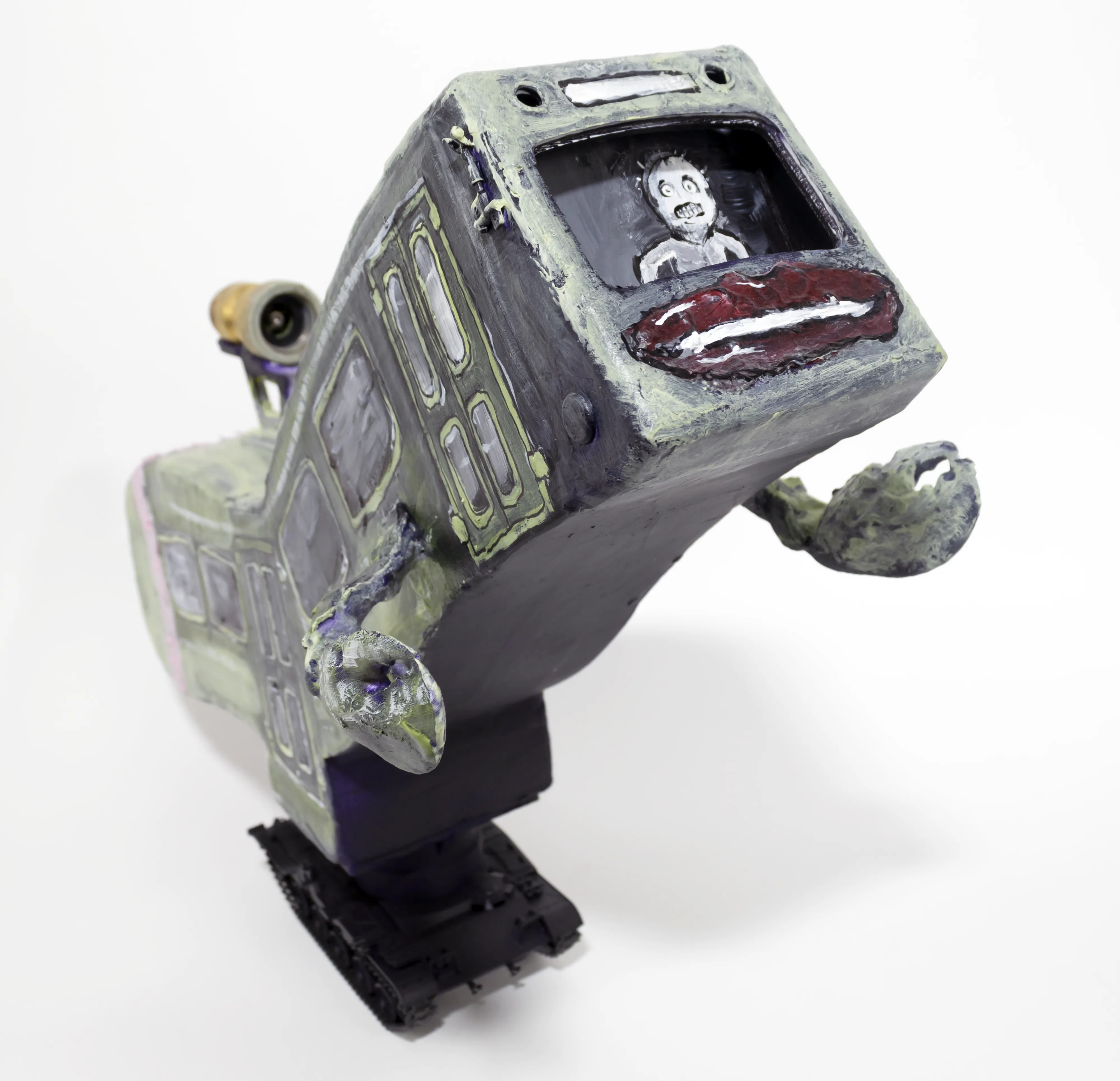 wood, cardboard, paper, 3D printed plastic, shredded comics, ink & acrylic